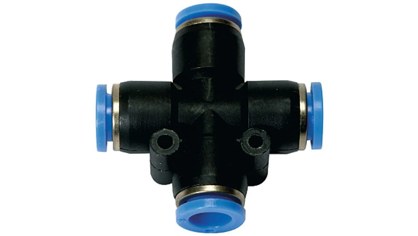 Czwórnik pneumatyczny wtykowy do węża fi 10 mm, tworzywo sztuczne, producent: PNEUMAT SYSTEM