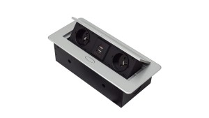 Gniazdo blatowe 3-krotne +2xUSB z pokrywą uchylną srebrne GB2PL+2-SILVER