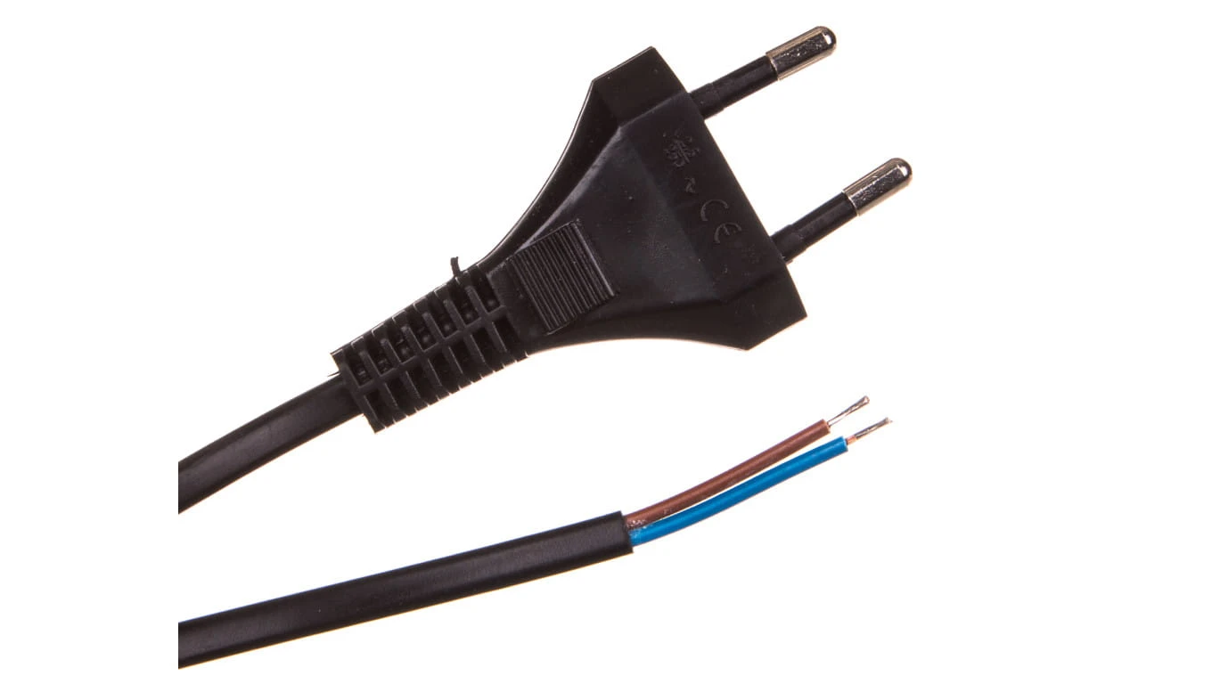 Przewód z płaską wtyczką b/u H03VVH2-F 2x0,5 czarny S-13-0,5-2-2 /2m/